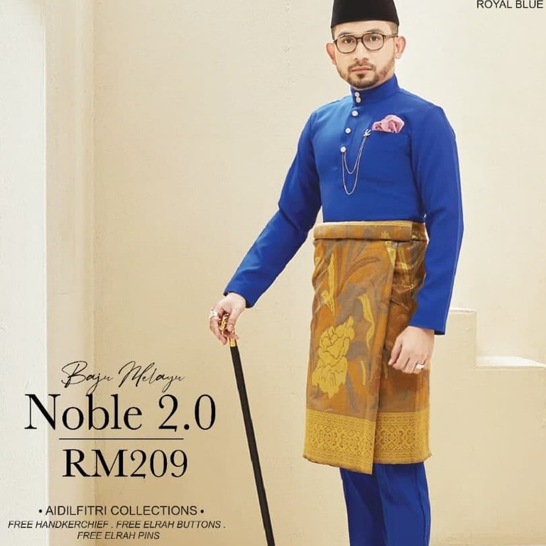 Baju Melayu Noble 2 0 Elrah Royal Blue Shopee Malaysia