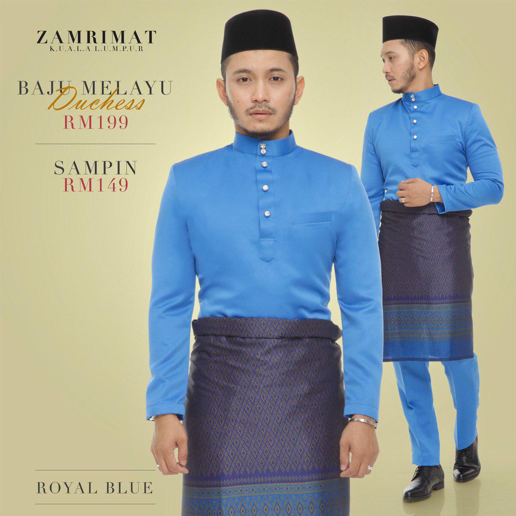 Baju Melayu Duchess Slim Fit Royal Blue Shopee Malaysia